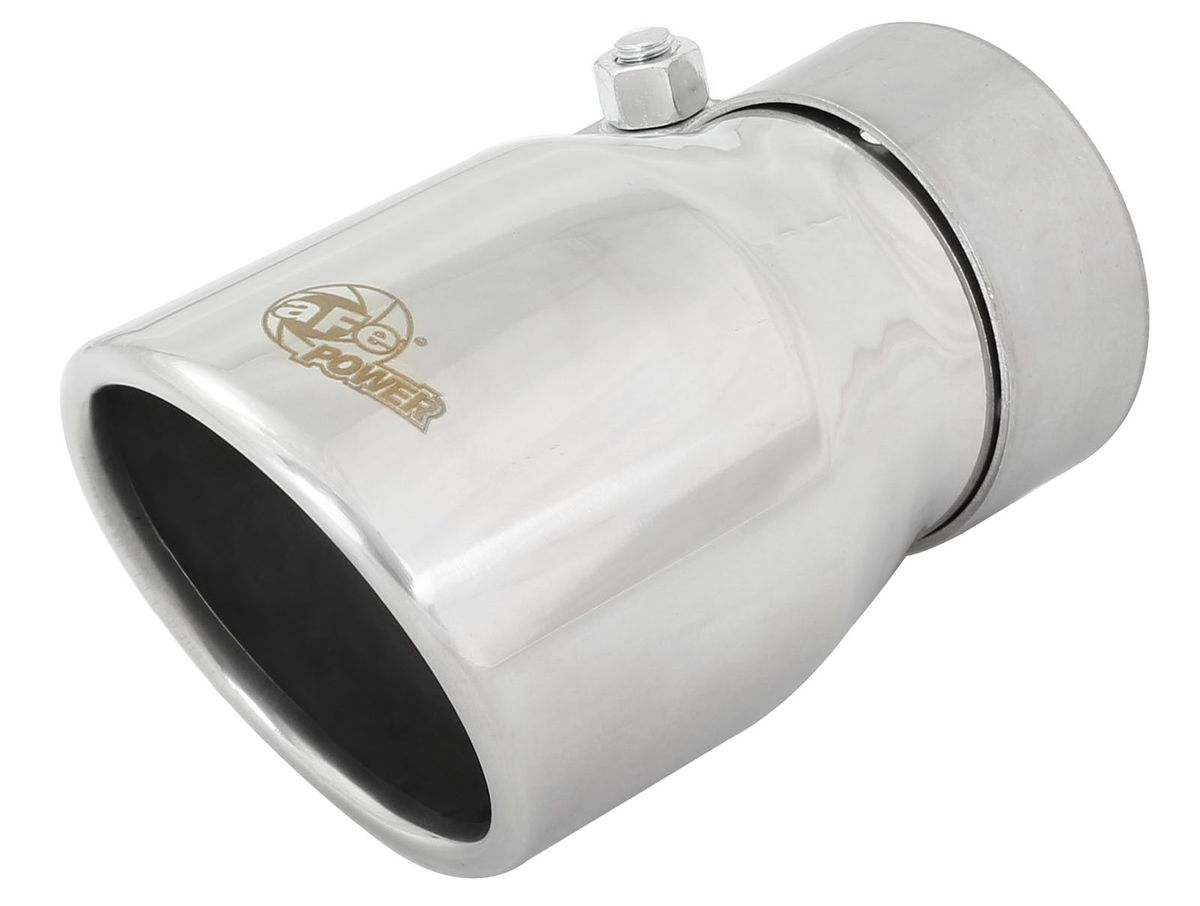 aFe advanced flow engineering has T-304 and T-409 stainless steel exhaust tips available in both black powder-coat and polished. Bolt-on clamps make for an easy installation. Available in a myriad of different inlet, outlet, and lengths, there is sure to be the perfect aFe exhaust tip waiting for you.
