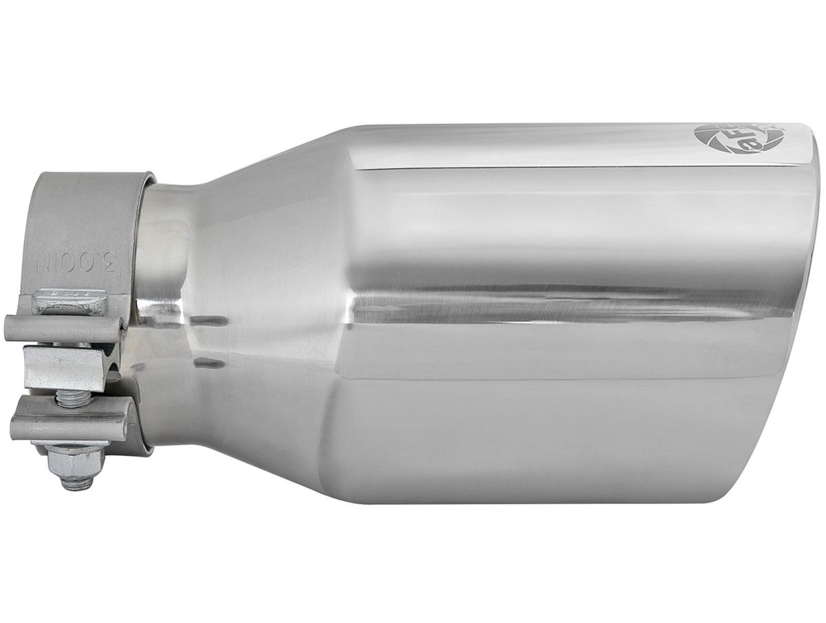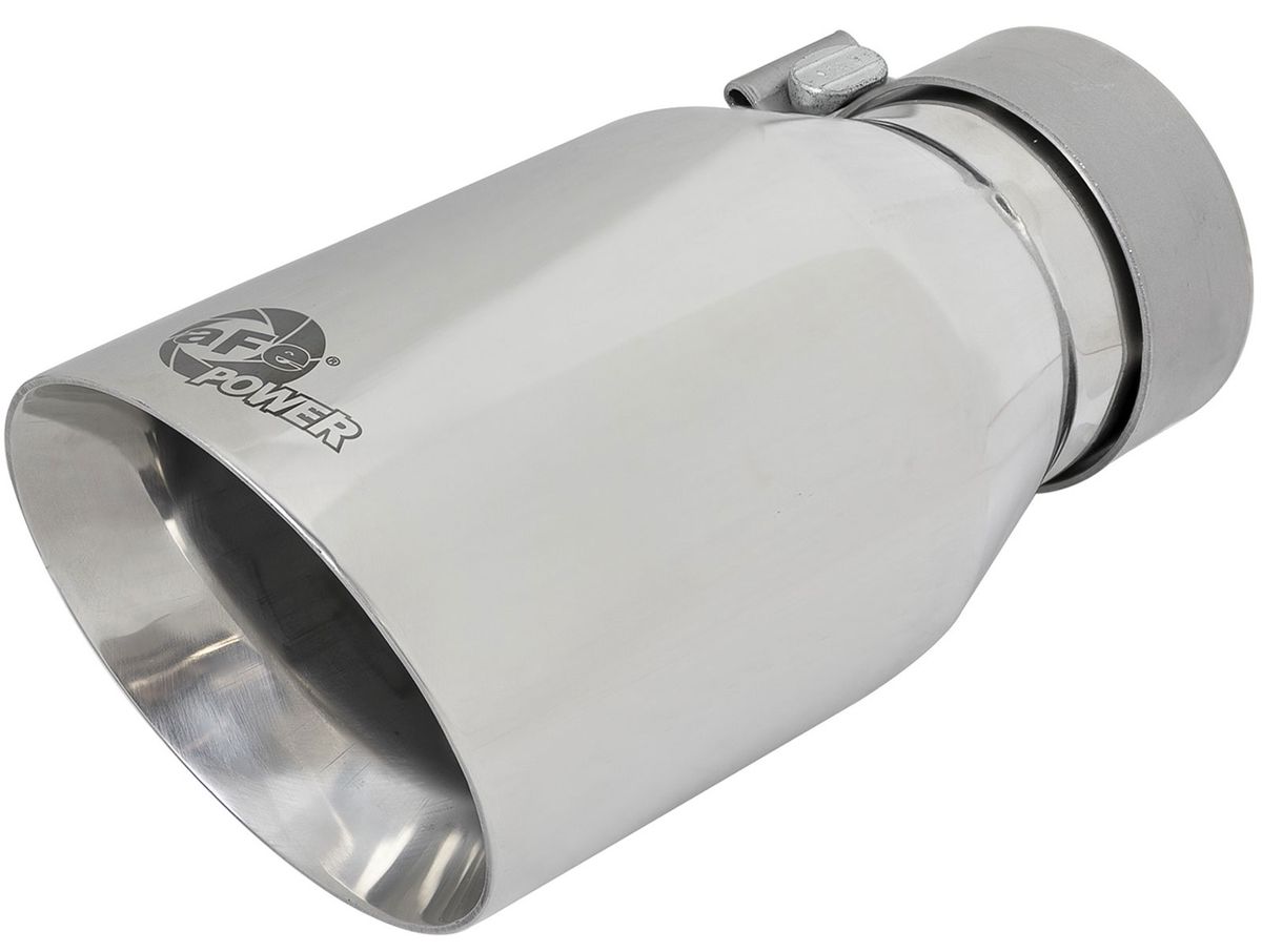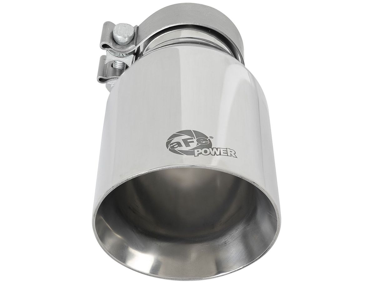 aFe advanced flow engineering has T-304 and T-409 stainless steel exhaust tips available in both black powder-coat and polished. Bolt-on clamps make for an easy installation. Available in a myriad of different inlet, outlet, and lengths, there is sure to be the perfect aFe exhaust tip waiting for you.