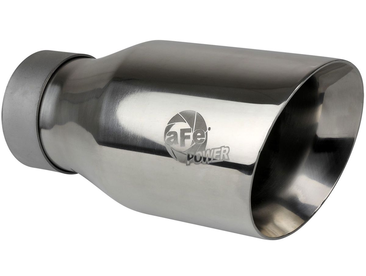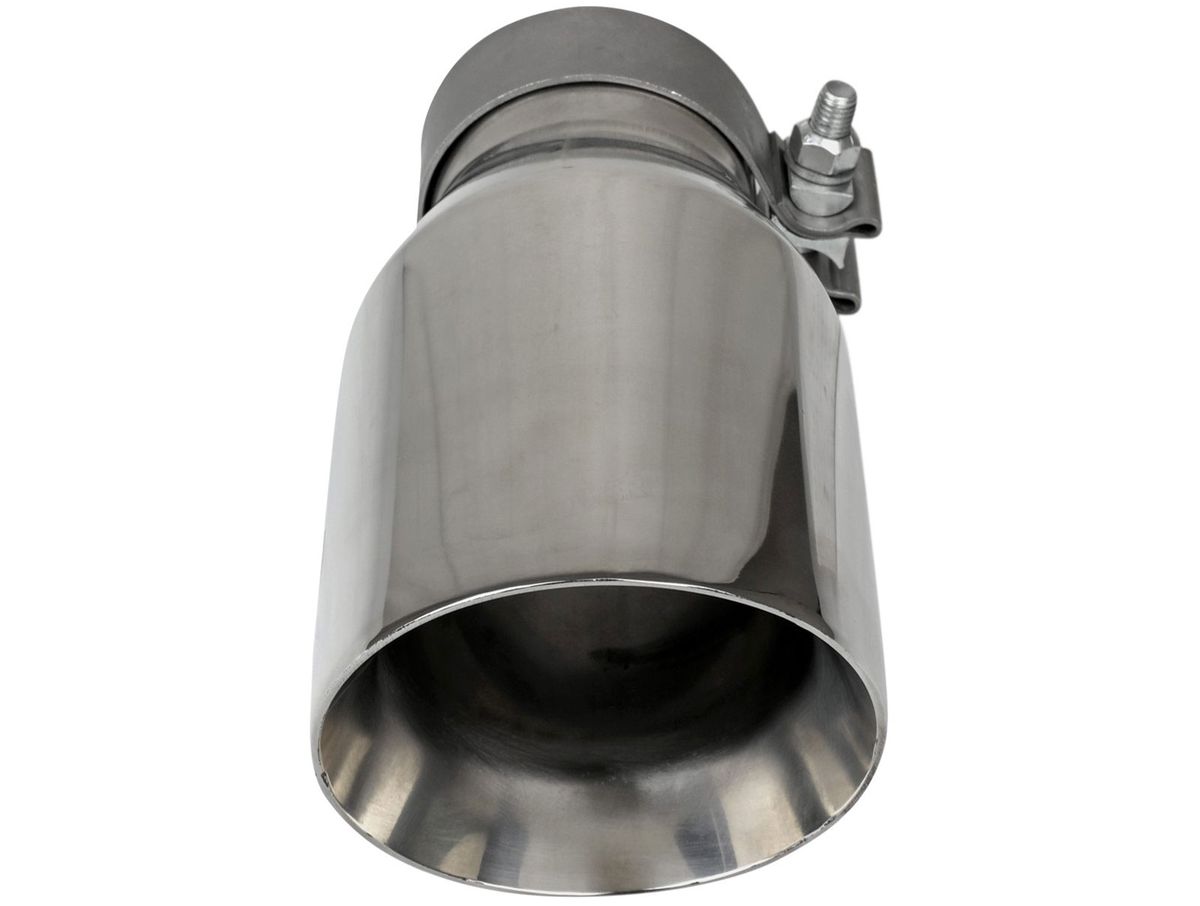 aFe advanced flow engineering has T-304 and T-409 stainless steel exhaust tips available in both black powder-coat and polished. Bolt-on clamps make for an easy installation. Available in a myriad of different inlet, outlet, and lengths, there is sure to be the perfect aFe exhaust tip waiting for you.