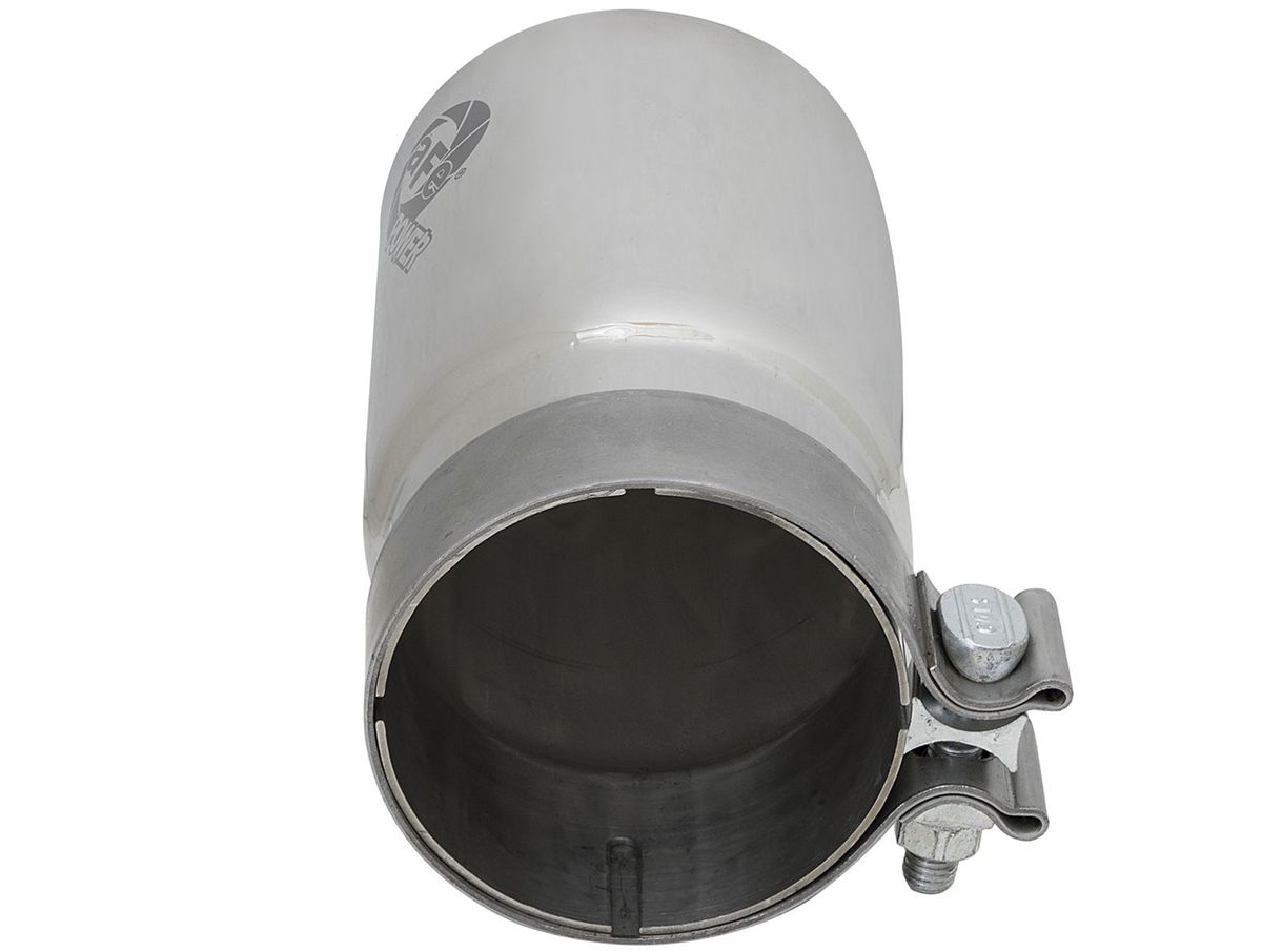 aFe advanced flow engineering has T-304 and T-409 stainless steel exhaust tips available in both black powder-coat and polished. Bolt-on clamps make for an easy installation. Available in a myriad of different inlet, outlet, and lengths, there is sure to be the perfect aFe exhaust tip waiting for you.