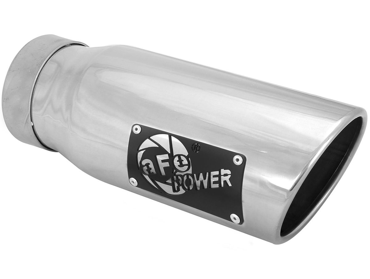 aFe advanced flow engineering has T-304 and T-409 stainless steel exhaust tips available in both black powder-coat and polished. Bolt-on clamps make for an easy installation. Available in a myriad of different inlet, outlet, and lengths, there is sure to be the perfect aFe exhaust tip waiting for you.