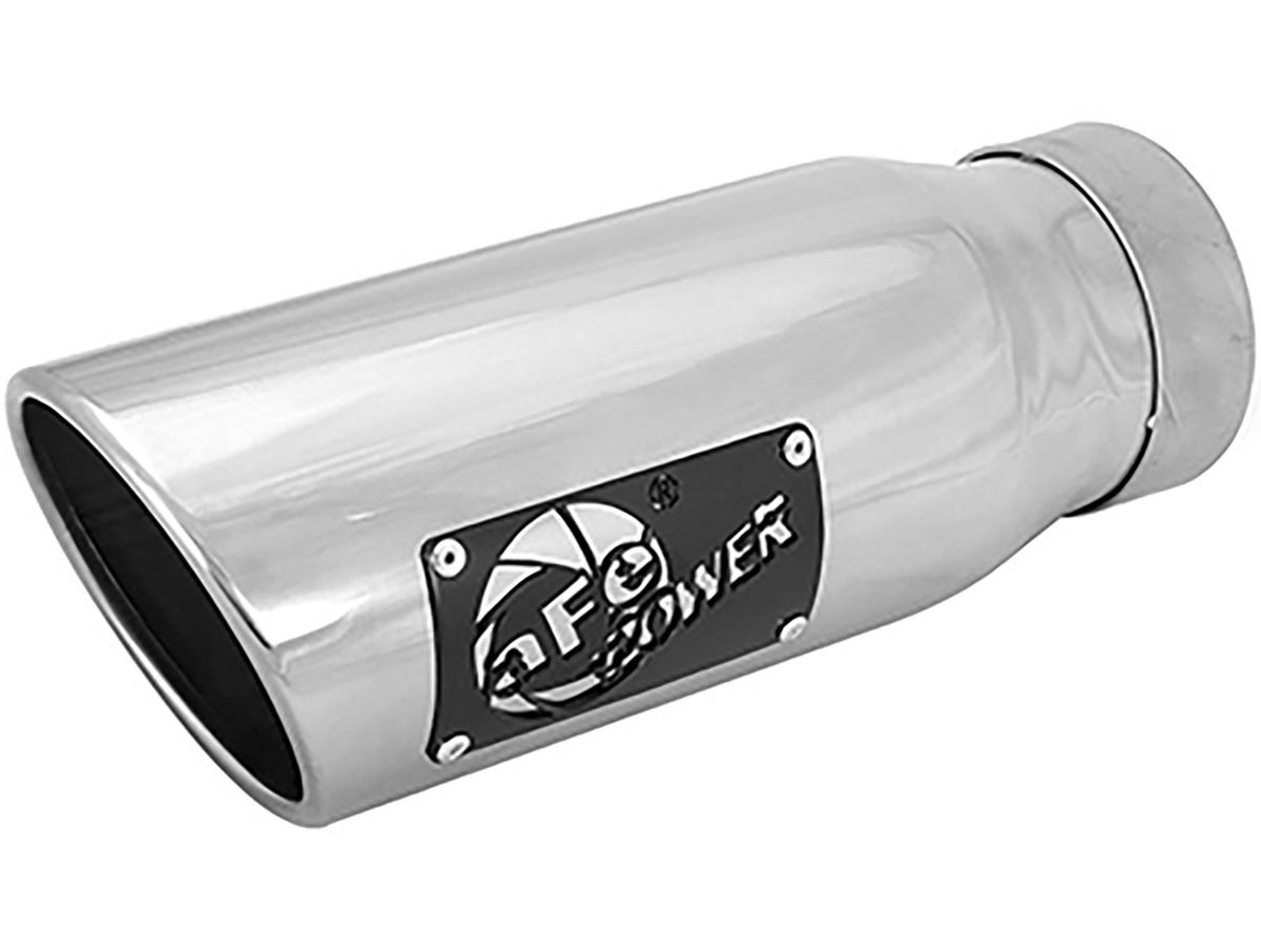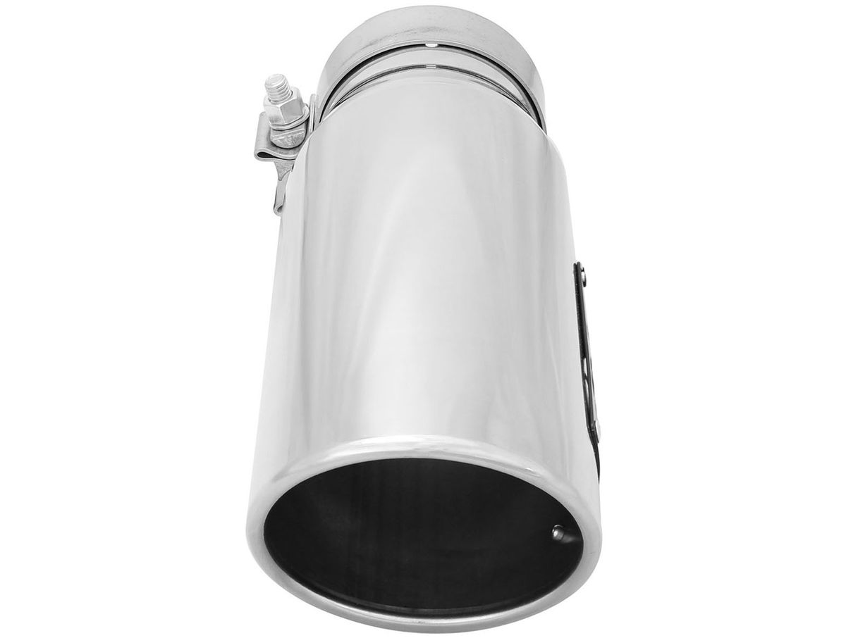 aFe advanced flow engineering has T-304 and T-409 stainless steel exhaust tips available in both black powder-coat and polished. Bolt-on clamps make for an easy installation. Available in a myriad of different inlet, outlet, and lengths, there is sure to be the perfect aFe exhaust tip waiting for you.