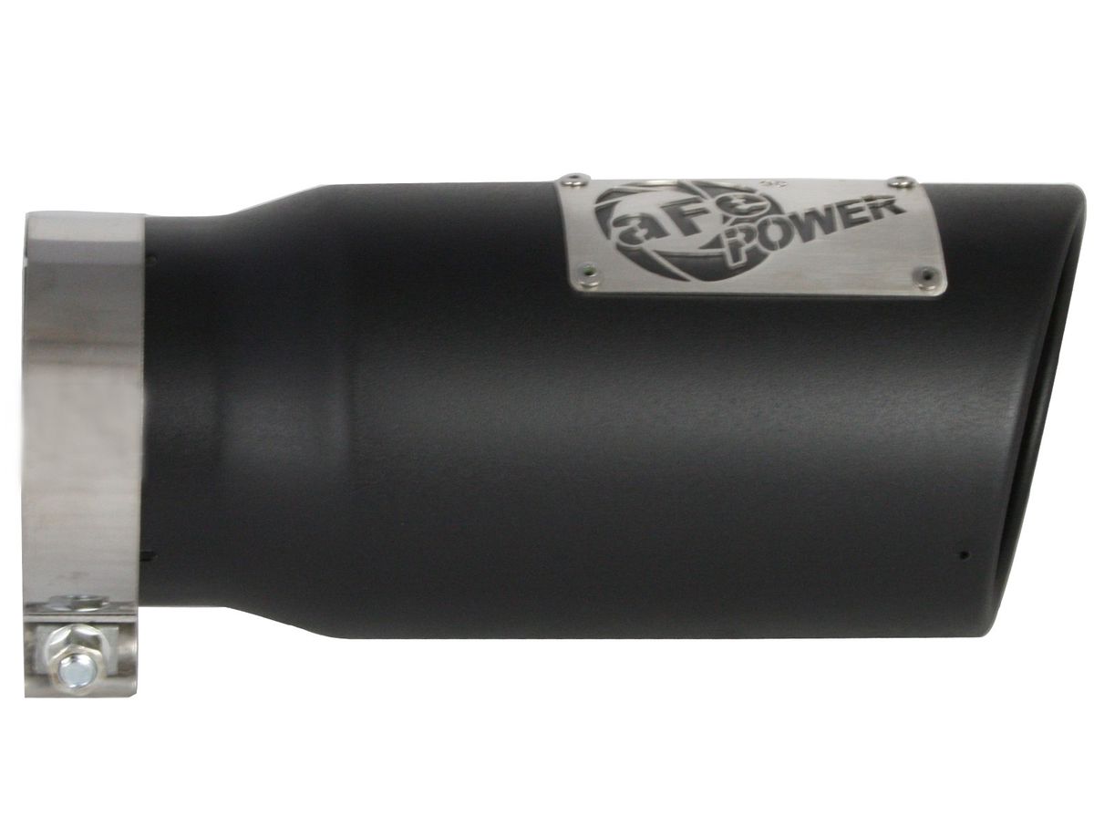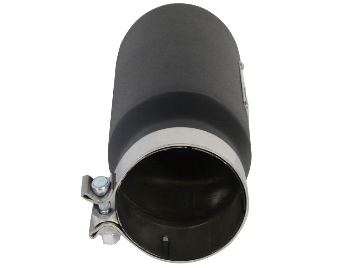 aFe advanced flow engineering has T-304 and T-409 stainless steel exhaust tips available in both black powder-coat and polished. Bolt-on clamps make for an easy installation. Available in a myriad of different inlet, outlet, and lengths, there is sure to be the perfect aFe exhaust tip waiting for you.