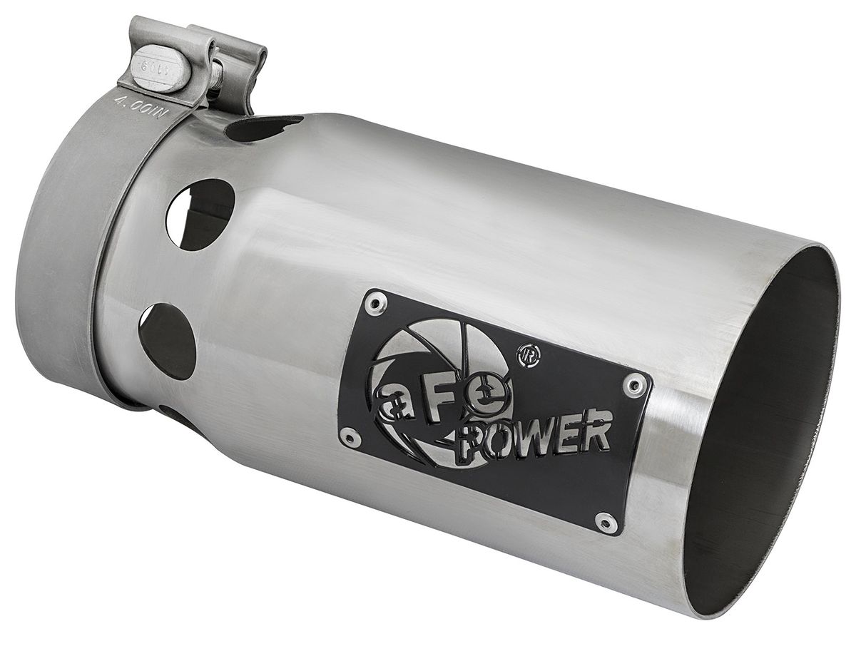 aFe advanced flow engineering has T-304 and T-409 stainless steel exhaust tips available in both black powder-coat and polished. Bolt-on clamps make for an easy installation. Available in a myriad of different inlet, outlet, and lengths, there is sure to be the perfect aFe exhaust tip waiting for you.