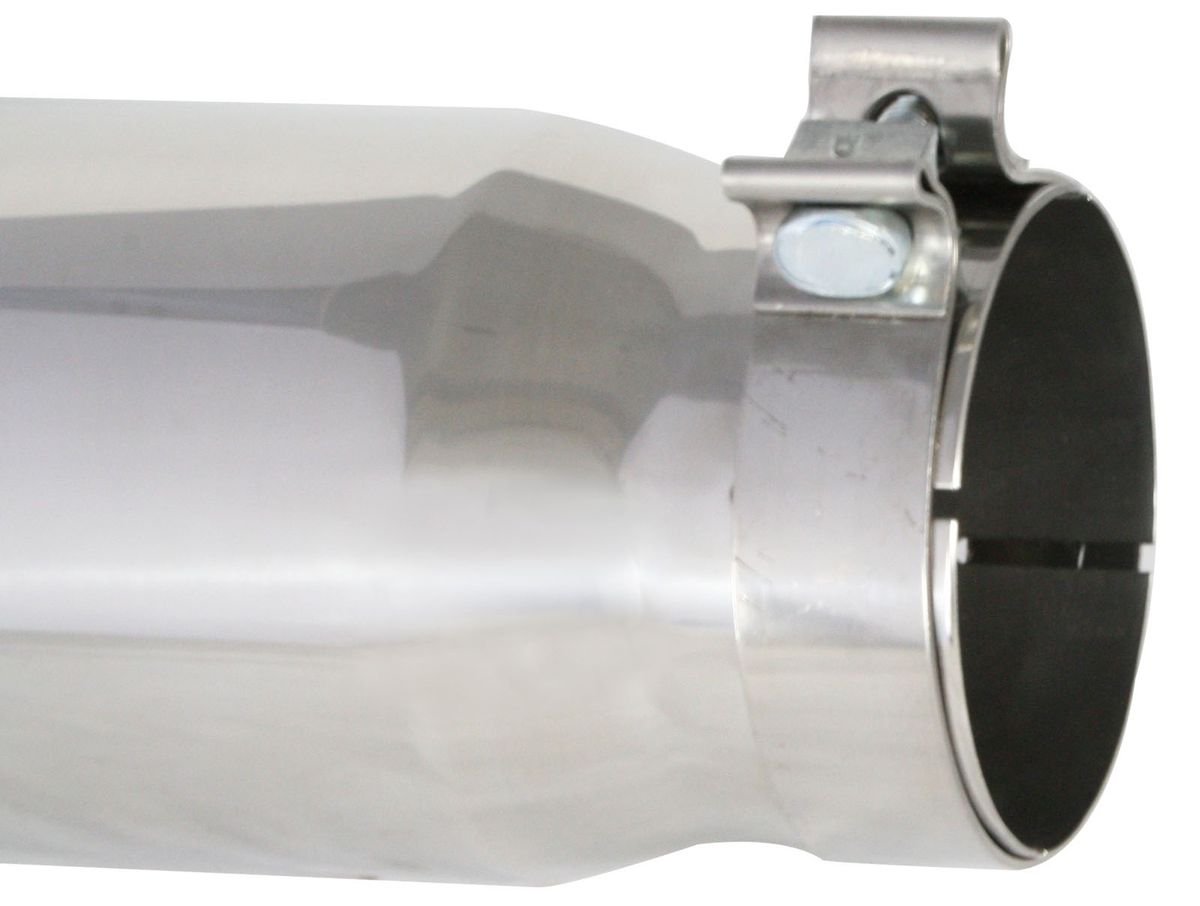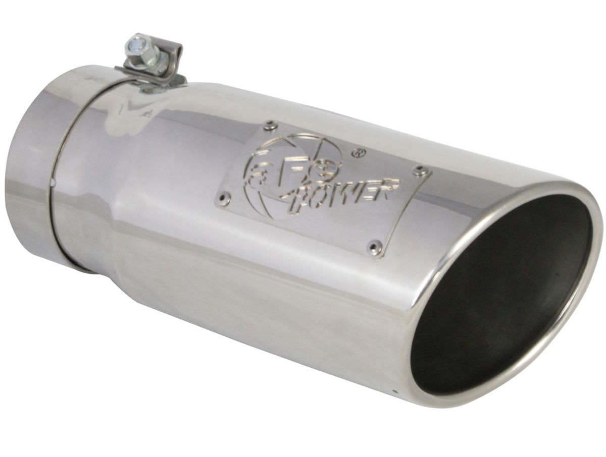aFe advanced flow engineering has T-304 and T-409 stainless steel exhaust tips available in both black powder-coat and polished. Bolt-on clamps make for an easy installation. Available in a myriad of different inlet, outlet, and lengths, there is sure to be the perfect aFe exhaust tip waiting for you.