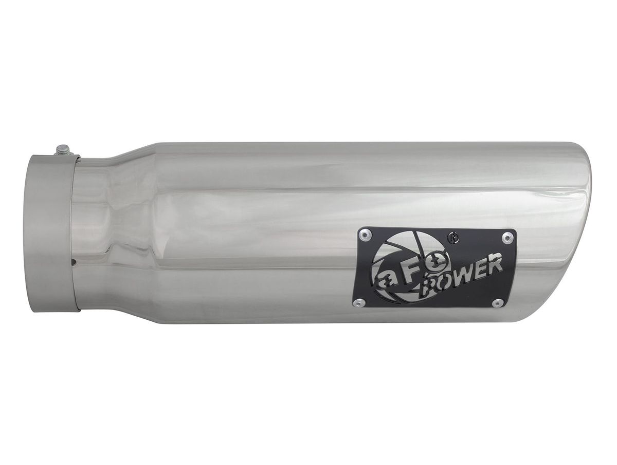 aFe advanced flow engineering has T-304 and T-409 stainless steel exhaust tips available in both black powder-coat and polished. Bolt-on clamps make for an easy installation. Available in a myriad of different inlet, outlet, and lengths, there is sure to be the perfect aFe exhaust tip waiting for you.