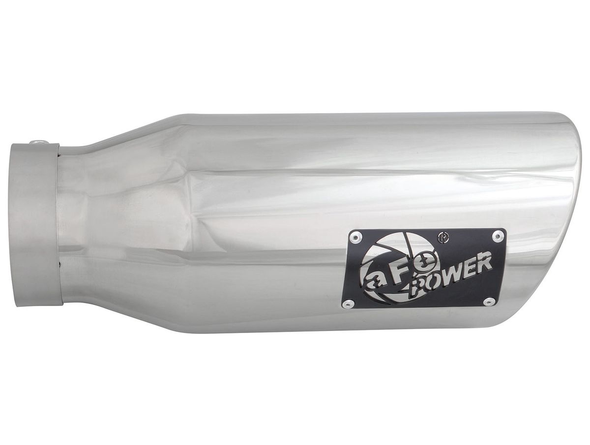 aFe advanced flow engineering has T-304 and T-409 stainless steel exhaust tips available in both black powder-coat and polished. Bolt-on clamps make for an easy installation. Available in a myriad of different inlet, outlet, and lengths, there is sure to be the perfect aFe exhaust tip waiting for you.