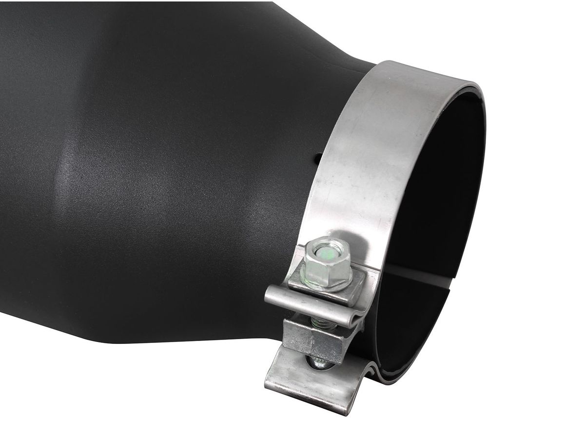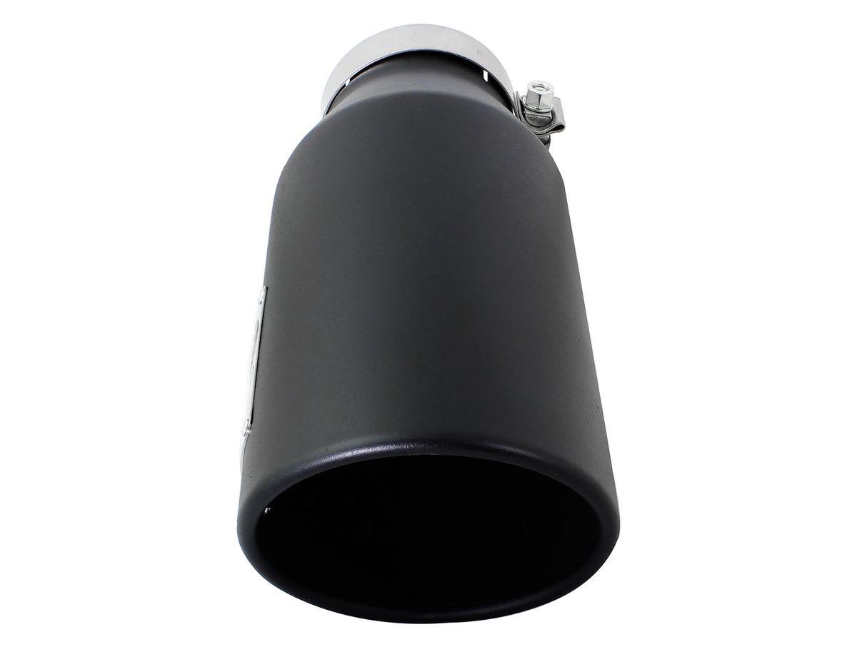 aFe advanced flow engineering has T-304 and T-409 stainless steel exhaust tips available in both black powder-coat and polished. Bolt-on clamps make for an easy installation. Available in a myriad of different inlet, outlet, and lengths, there is sure to be the perfect aFe exhaust tip waiting for you.