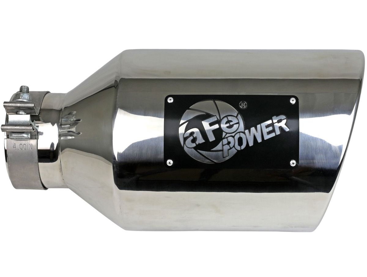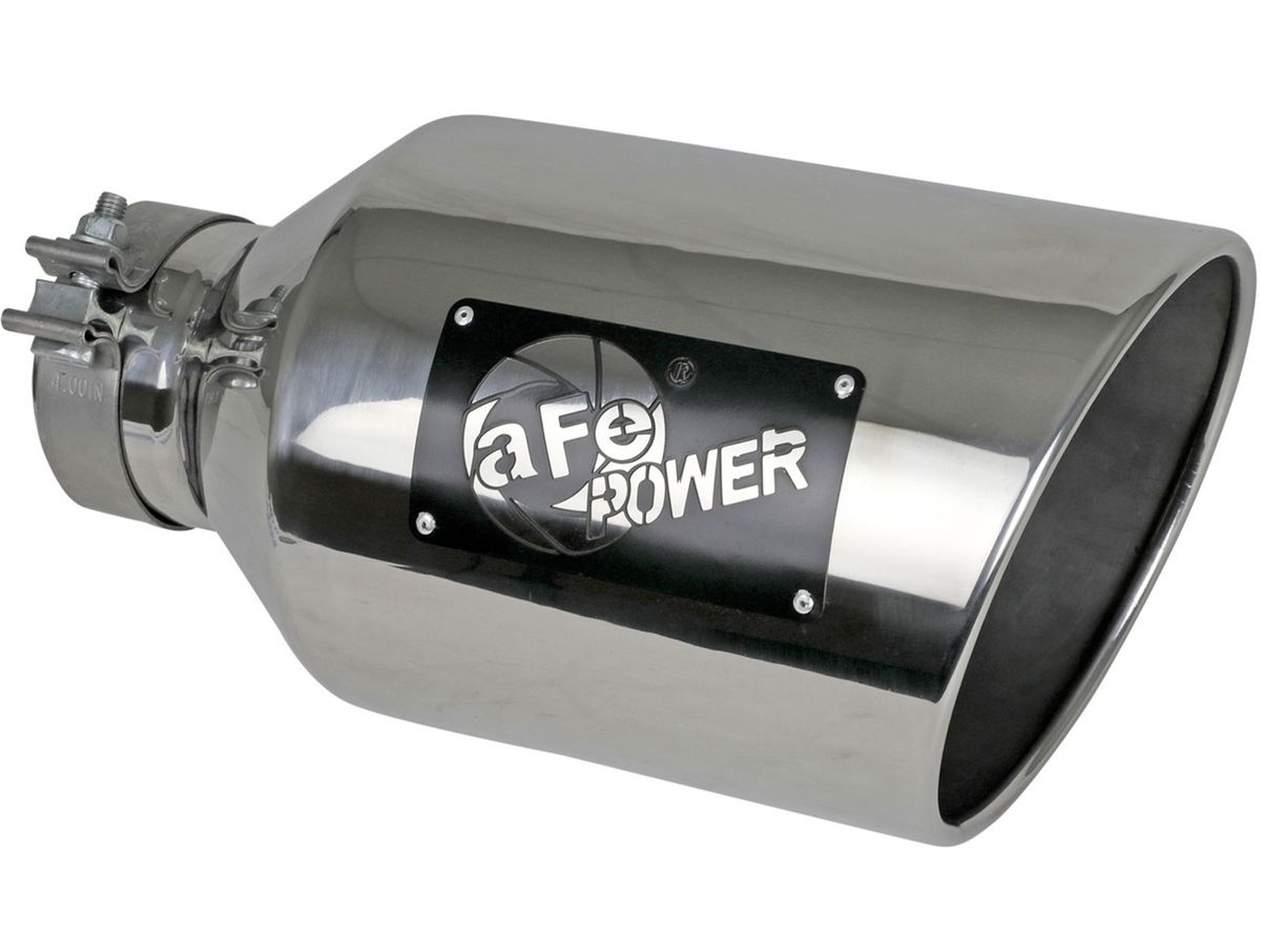 aFe advanced flow engineering has T-304 and T-409 stainless steel exhaust tips available in both black powder-coat and polished. Bolt-on clamps make for an easy installation. Available in a myriad of different inlet, outlet, and lengths, there is sure to be the perfect aFe exhaust tip waiting for you.