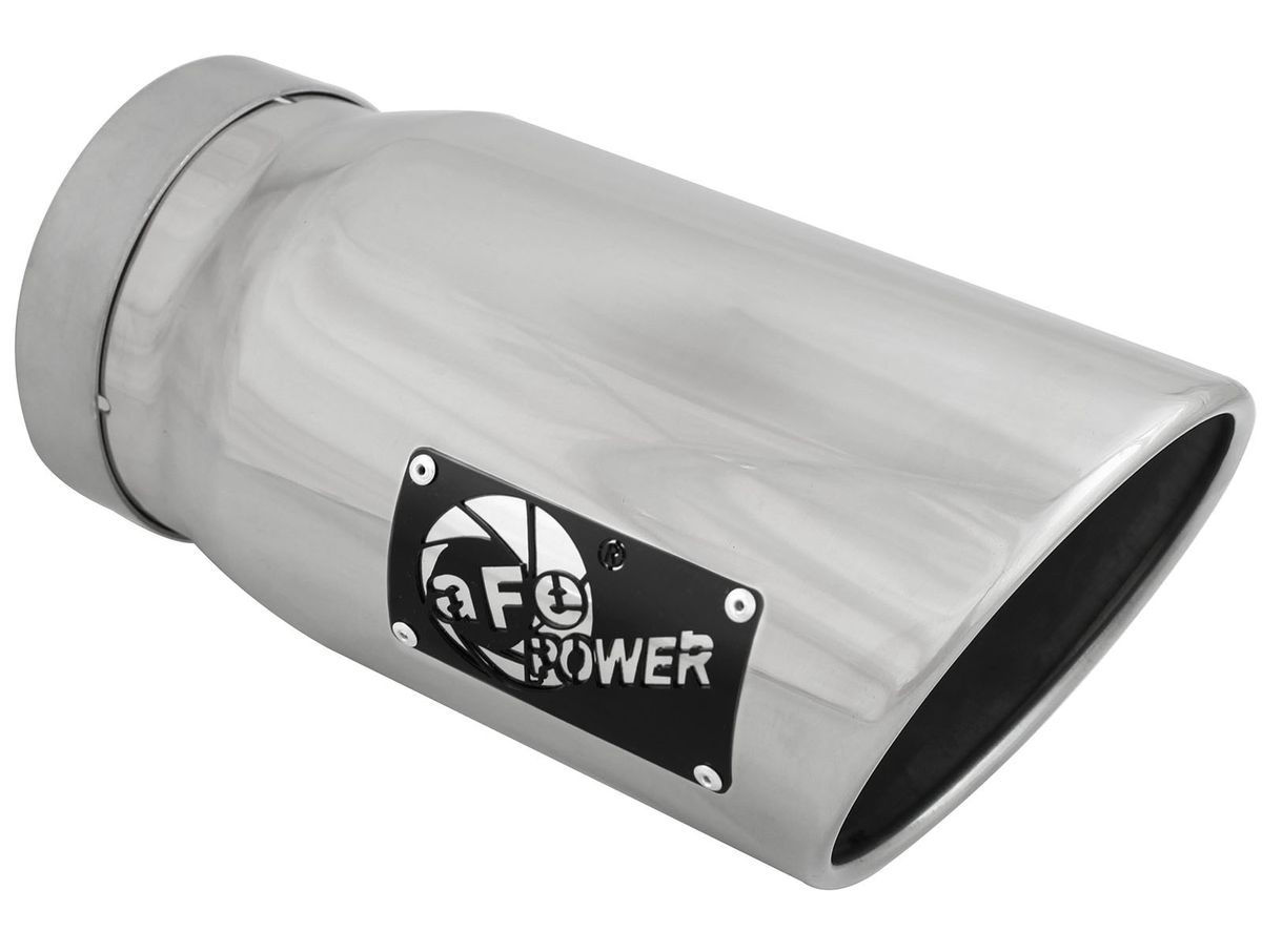 aFe advanced flow engineering has T-304 and T-409 stainless steel exhaust tips available in both black powder-coat and polished. Bolt-on clamps make for an easy installation. Available in a myriad of different inlet, outlet, and lengths, there is sure to be the perfect aFe exhaust tip waiting for you.
