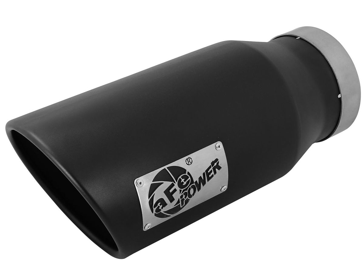 aFe advanced flow engineering has T-304 and T-409 stainless steel exhaust tips available in both black powder-coat and polished. Bolt-on clamps make for an easy installation. Available in a myriad of different inlet, outlet, and lengths, there is sure to be the perfect aFe exhaust tip waiting for you.