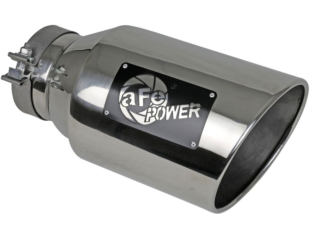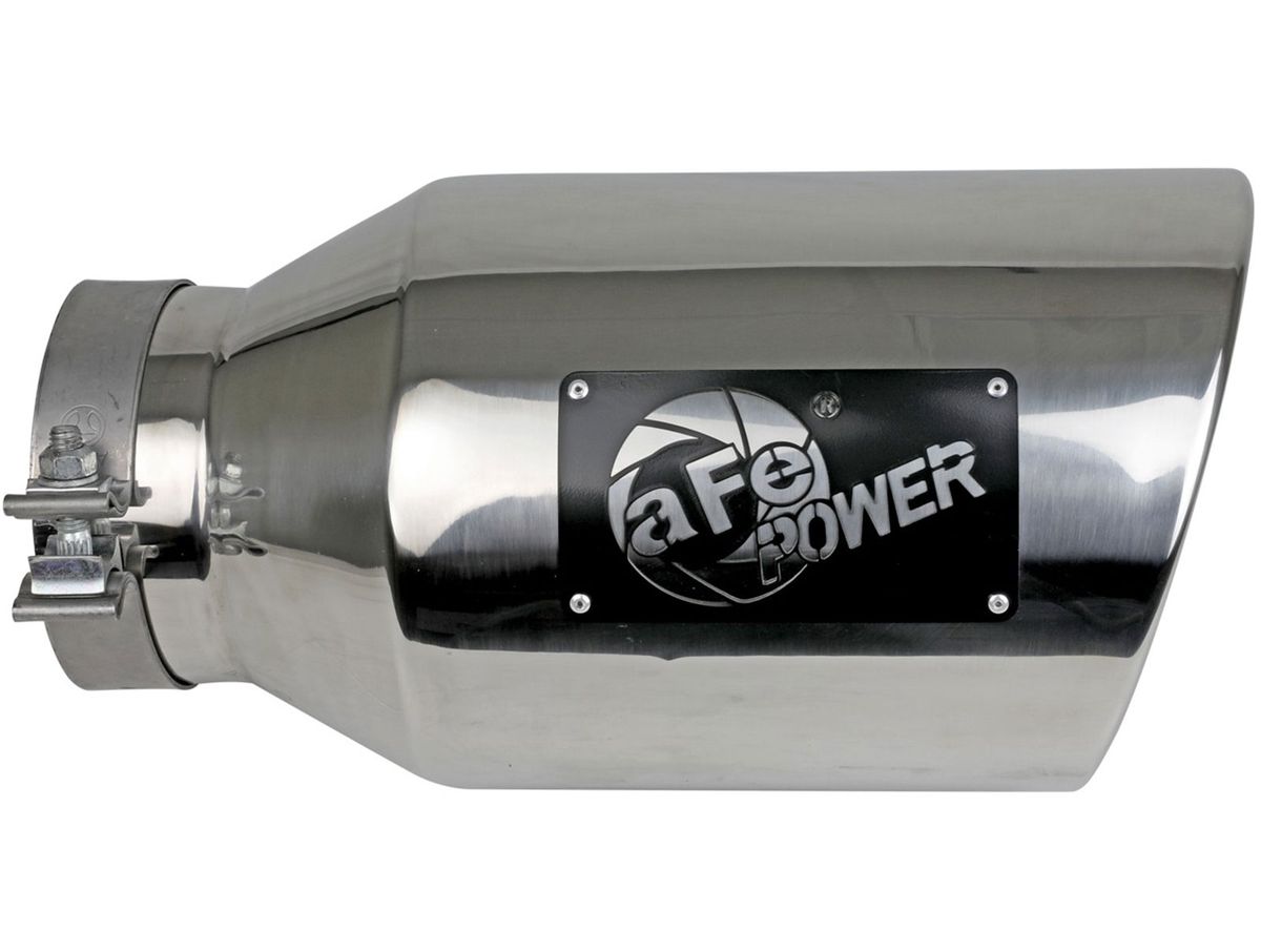 aFe advanced flow engineering has T-304 and T-409 stainless steel exhaust tips available in both black powder-coat and polished. Bolt-on clamps make for an easy installation. Available in a myriad of different inlet, outlet, and lengths, there is sure to be the perfect aFe exhaust tip waiting for you.