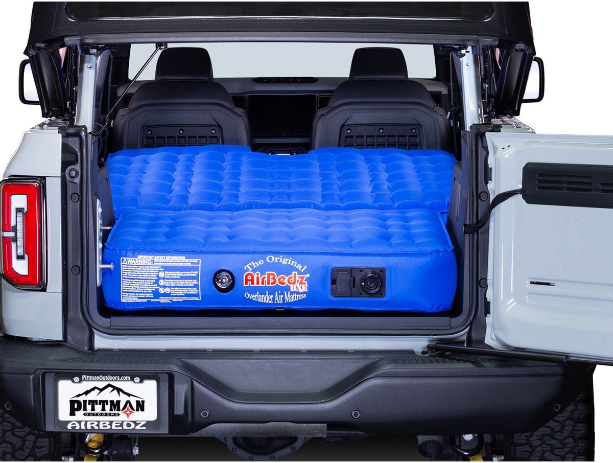 Transform your Ford Bronco into an adventure-ready haven with the NEW Ford Bronco only Airbedz® Air Mattress by Pittman Outdoors, the original Bronco air mattress. This inflatable rear-seat mattress creates a comfortable sleeping platform for car camping, overlanding, or weekend getaways. The built-in rechargeable pump inflates quickly, while durable, all-weather materials ensure comfort wherever your journey takes you.
