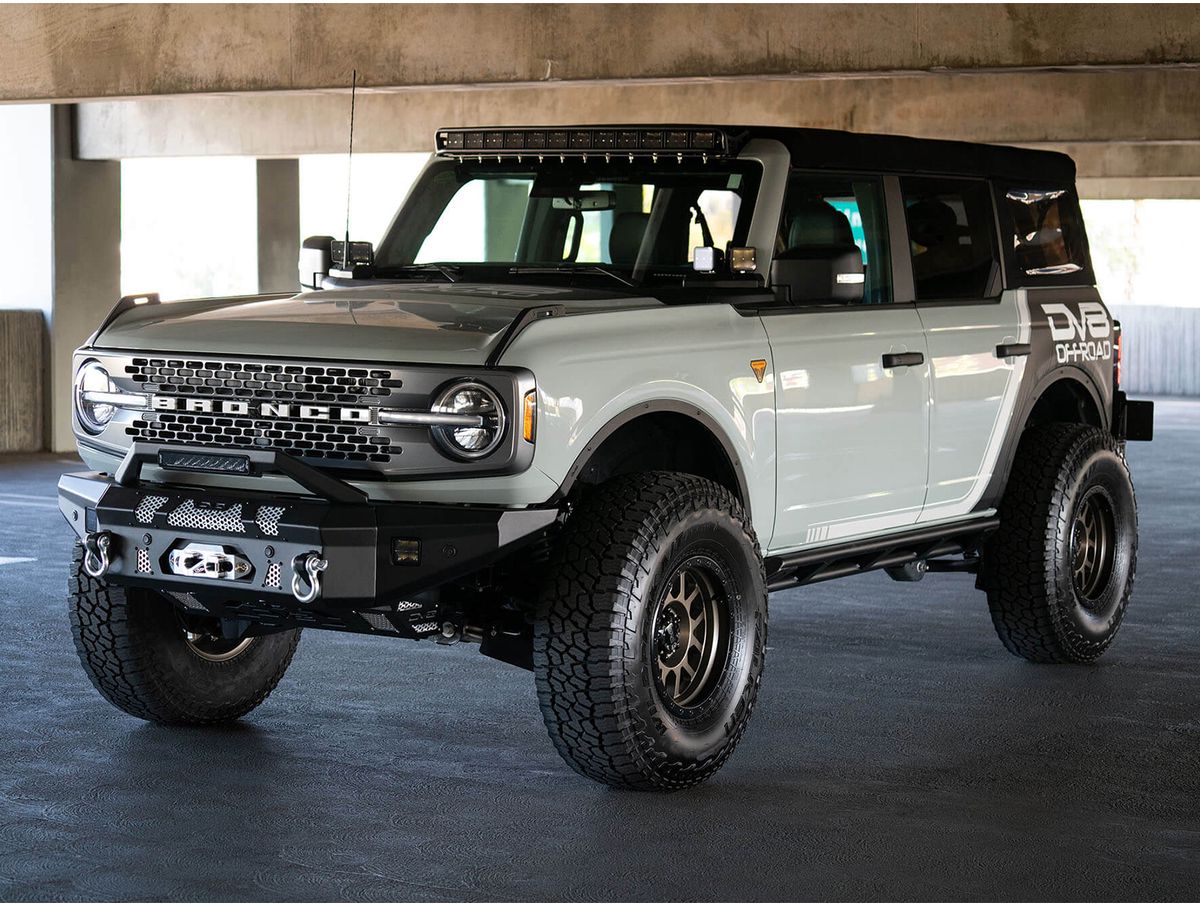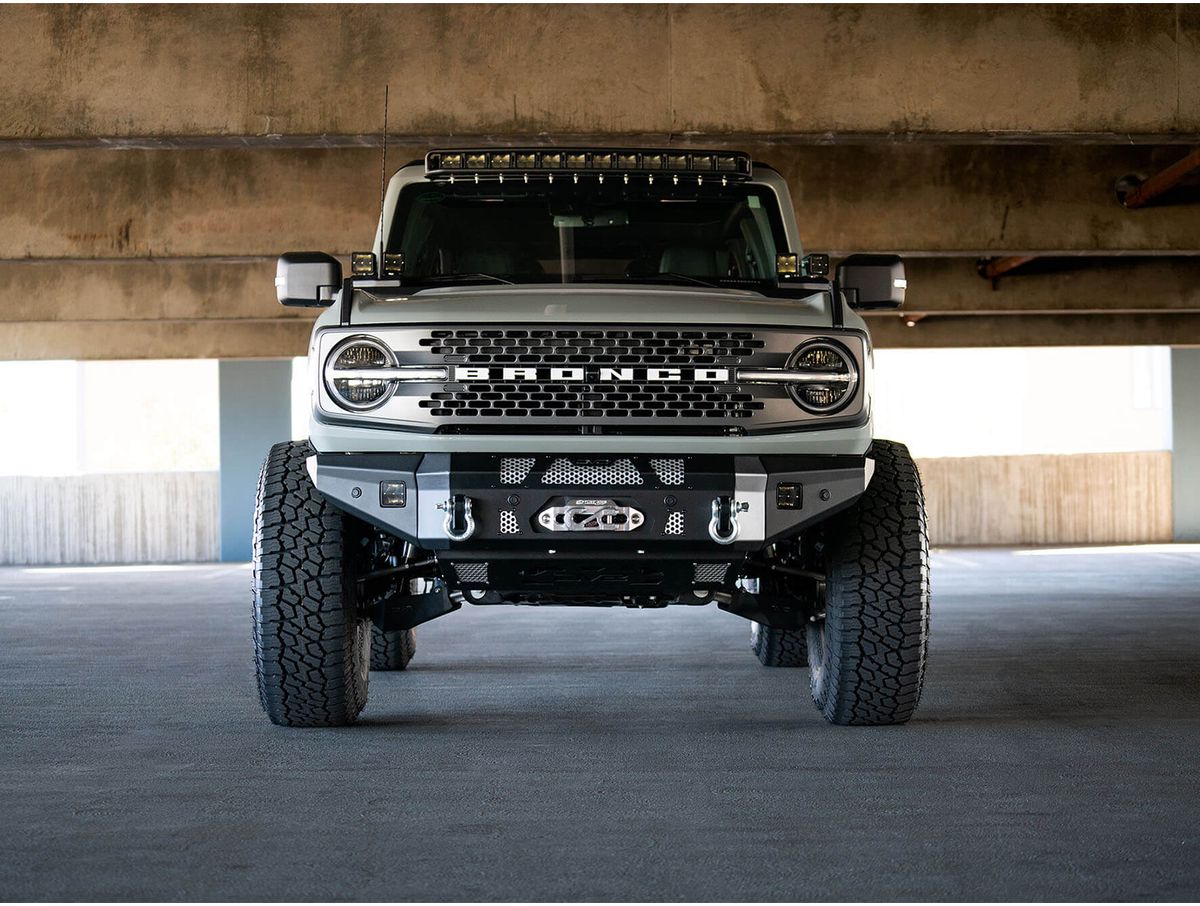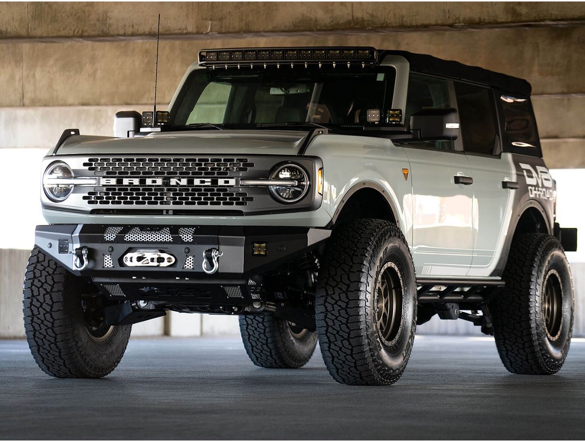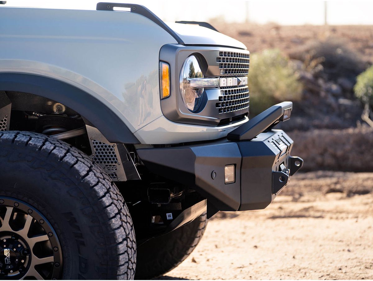 Gear up your Bronco for serious adventure with the DV8 Offroad MTO Front Winch Bumper - a winch-ready upgrade built for bold off-roaders and overlanders alike. Crafted from high-grade steel and compatible with all trim levels, this bumper brings rugged capability and aggressive styling to your Bronco without compromising factory features.