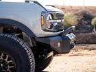 Engineered with trail performance in mind, the MTO Series bumper integrates seamlessly with OEM sensors and includes mesh inserts that can be color-matched for a custom look. On each side, you'll find mounts for 3" pod lights, while an optional MTO Light Mount Bull Bar lets you add a 13" LED light bar for extra visibility when the sun goes down.