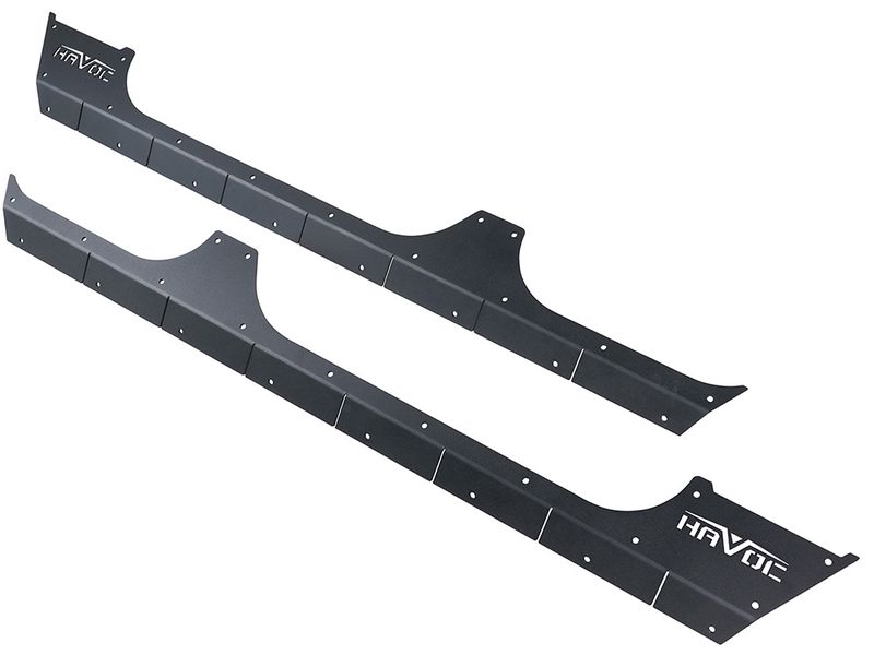 Havoc 4-Door Rocker Side Armor, 07-18 Jeep Wrangler JKU, Black Powder-Coated 3/16" Aluminum Plate, includes mounting hardware