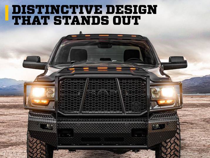 • DISCTINCTIVE DESIGN THAT STANDS OUT. A matte-black DuraFlex™ material, form-fit profile, and raised AeroLift design combine for a bold look that elevates your vehicle’s front end.