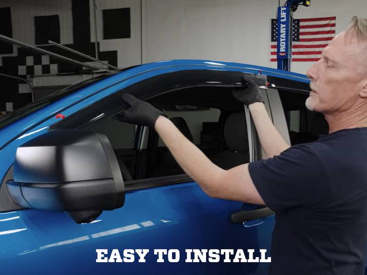 Husky Liners Low Profile Ventvisor® Window Deflectors feature simple, peel-and-stick installations. Each Ventvisor® includes pre-installed 3M double-sided adhesive. Simple prep the installation area with included prep wipes, peel the red adhesive backing, align the Ventvisor® with its associated window, and press firmly to initiate a solid bond.