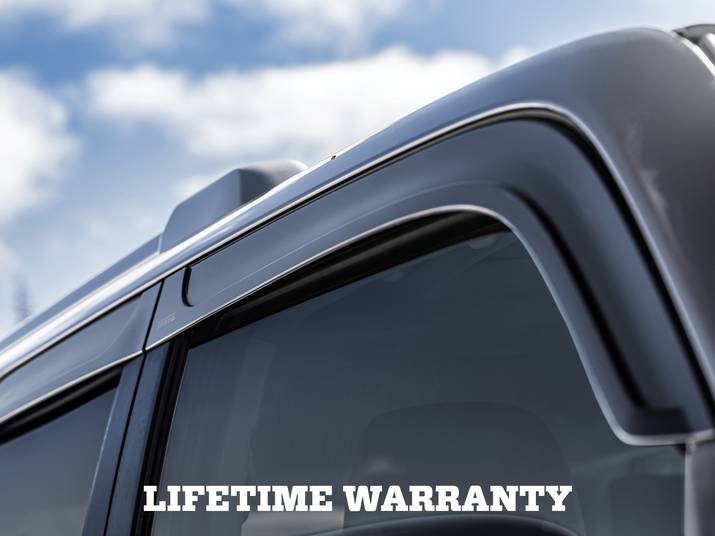 STANDS UP TO WEATHER IN STANDOUT STYLE Keep the rain out and the adventure on with the lowest profile rain guard on the market. The Husky Low Profile Ventvisor® gives you that subtle custom style you want, with the weather protection you need. Mounts in minutes, with 3M automotive-grade adhesive tape. Backed by a Limited Lifetime Warranty.