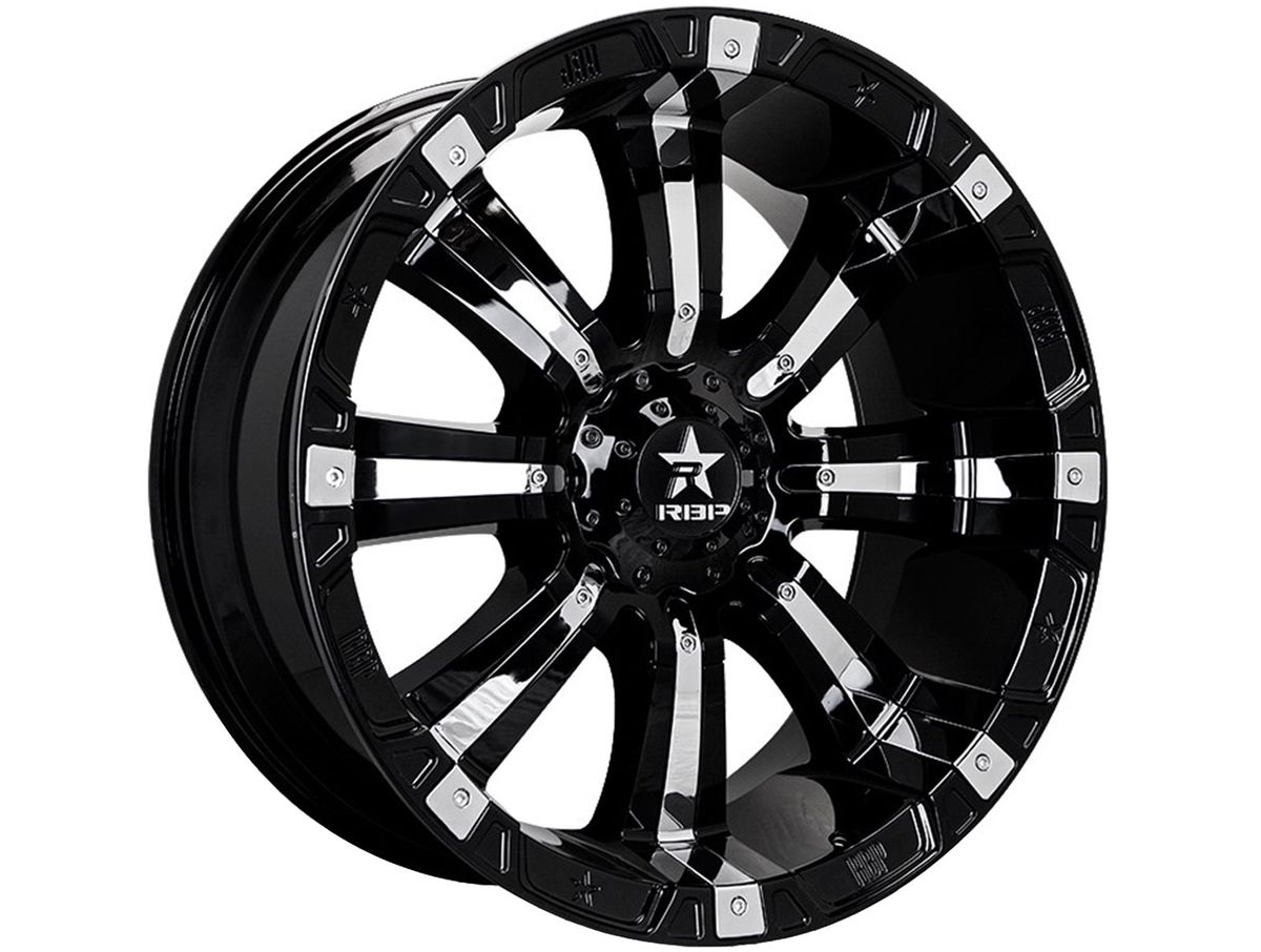 RBP Black & Chrome 94R Wheels feature a creative design using dynamic spokes and sharp angles to separate the wheel from the rest. The spokes sport aggressive contours as they blend into the lip of the wheel. Spoked designs and large diameters are what RBP specializes in, and the 94R puts those features on display.