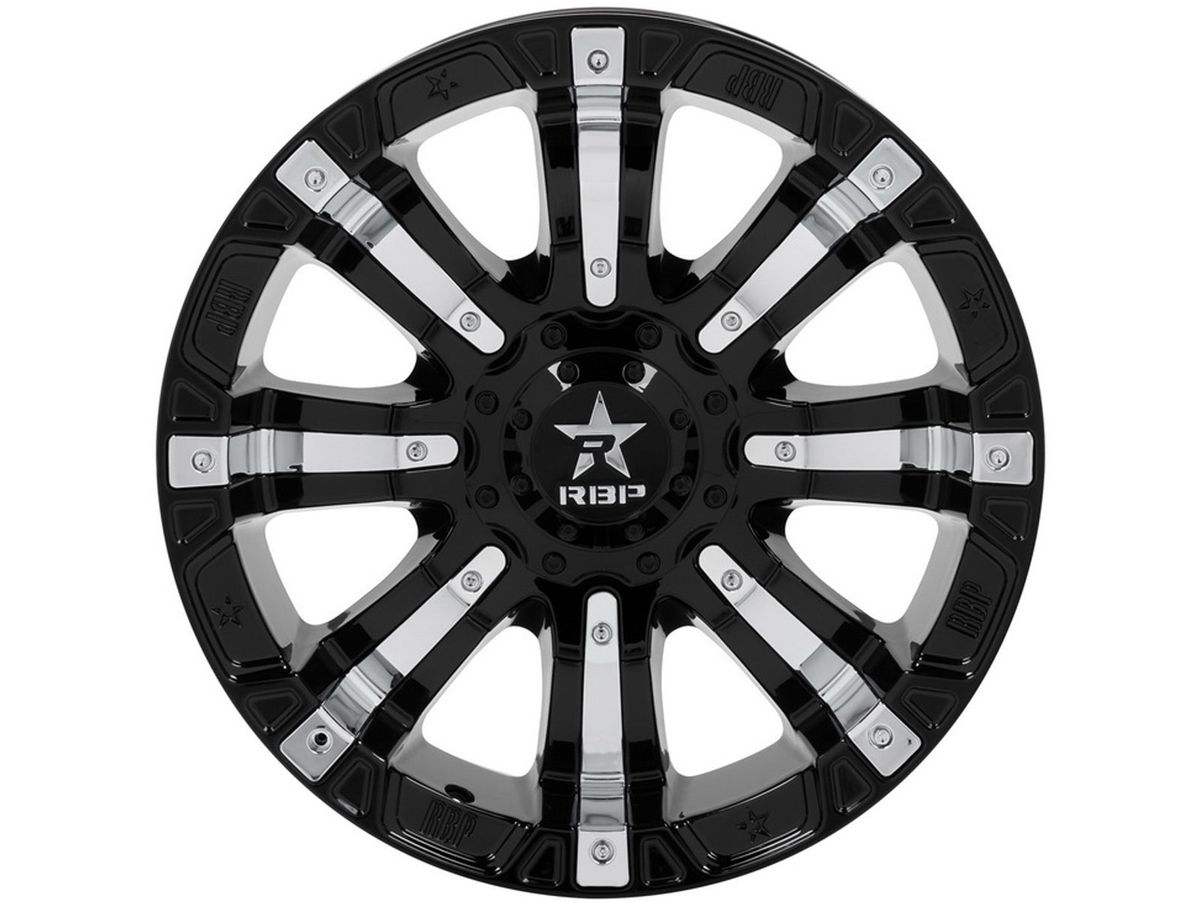 The wheel is covered in a gloss black finish that is offset by the chrome inserts down the middle of the spoke. The wheel lip is contoured to enhance the depth and style of the wheel. The center cap is adorned with the RBP logo to complete the look.