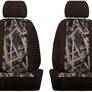 Ruff Tuff’s camo fabric is highly water and abrasion resistant while their Exotics fabric is water repellant UV resistant. There are 16 camouflage colors and 11 Exotics colors to choose from. Depending on your vehicle these seat covers will include map pockets, airbag cutouts, headrest, armrest, and console covers.